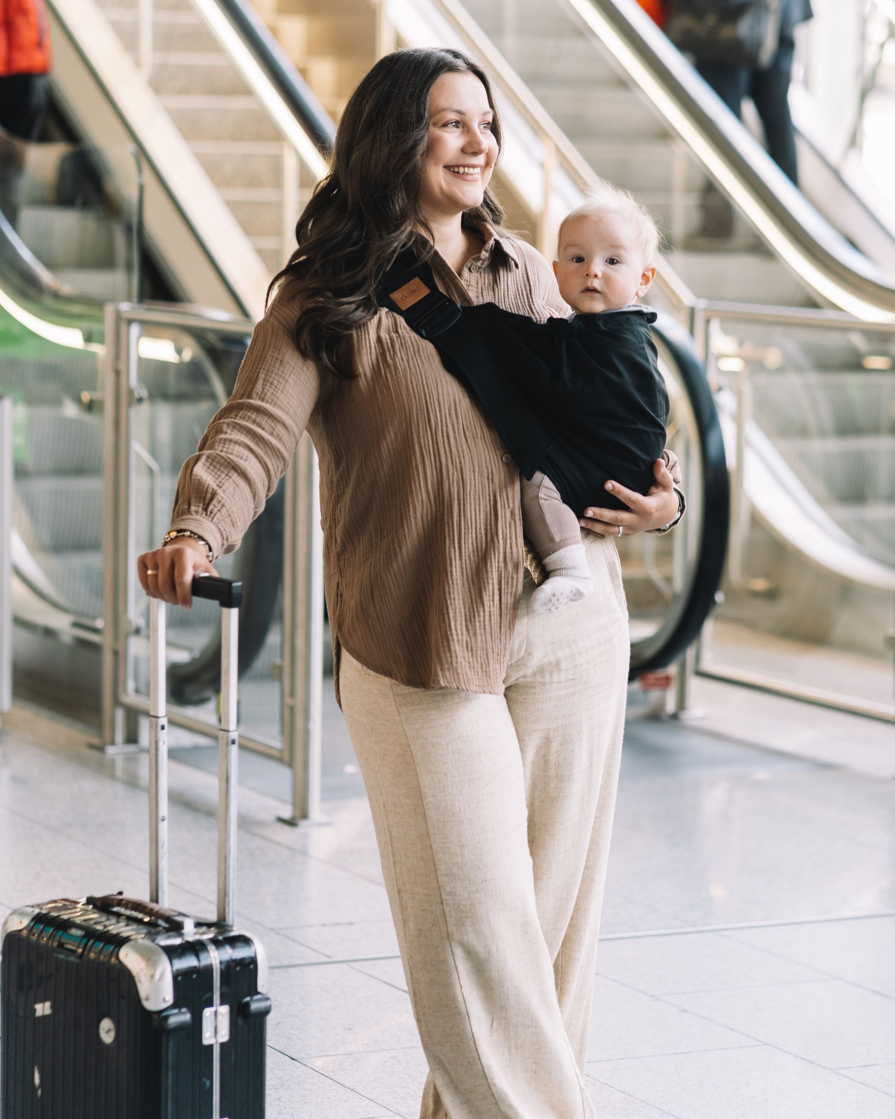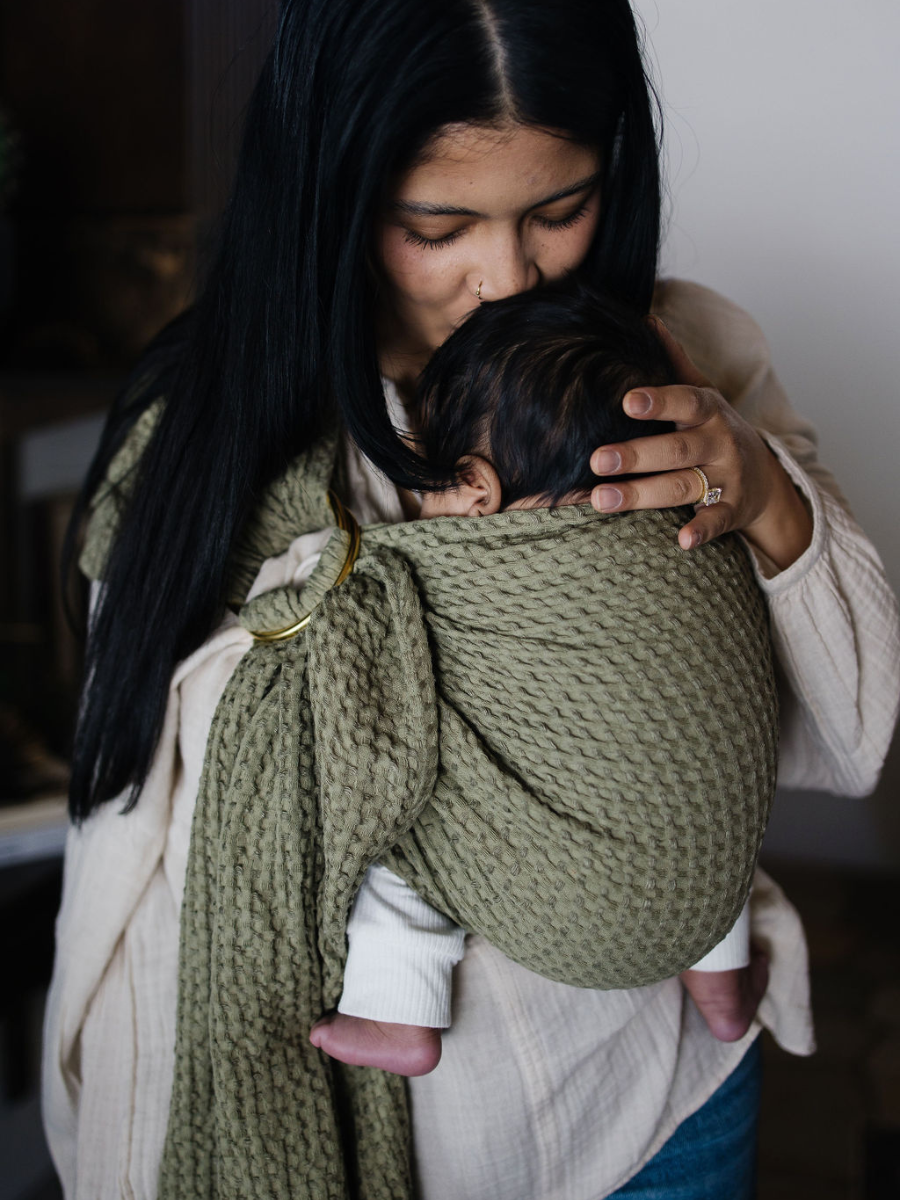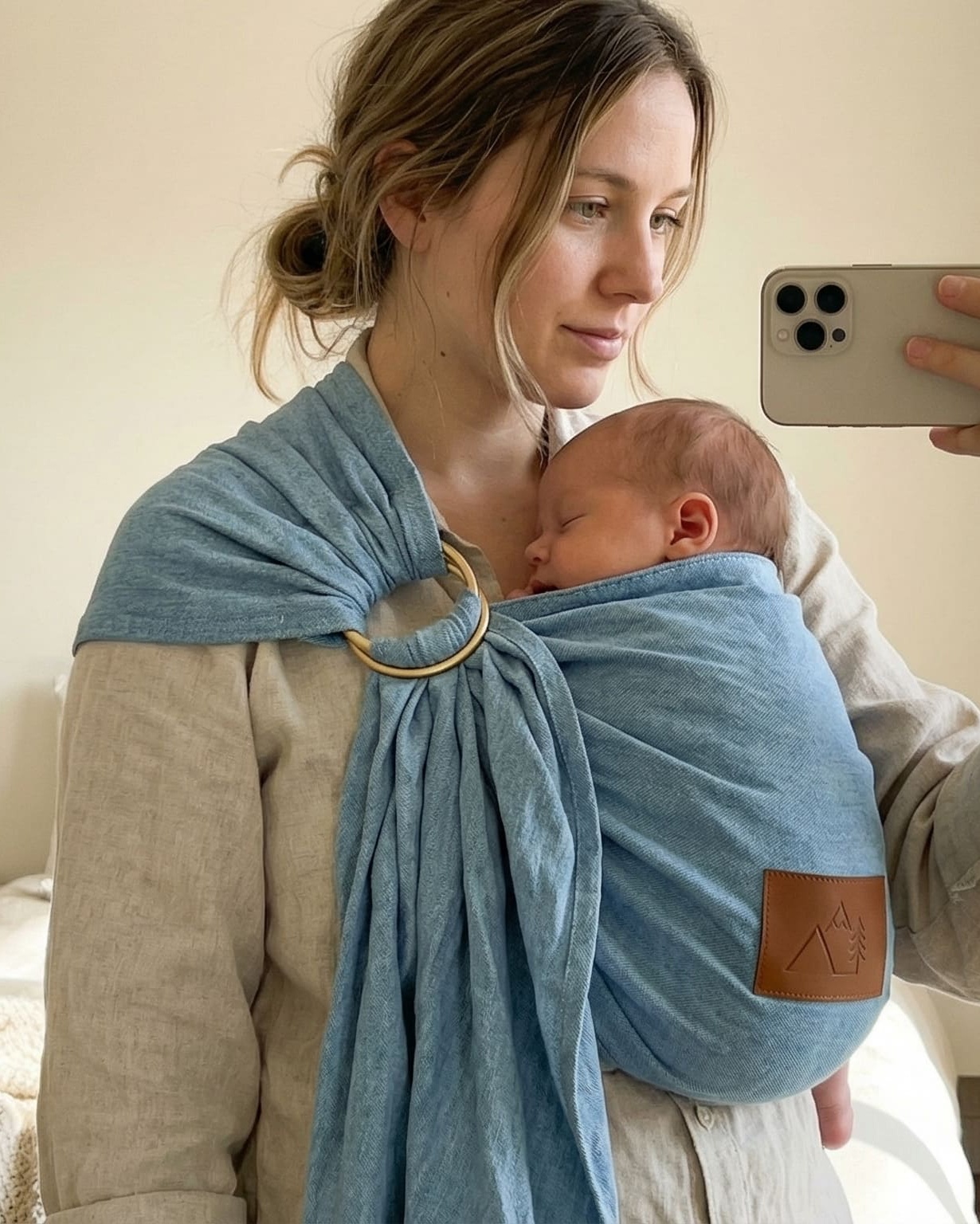 "This linen sling is an absolute dream. I was worried about the break-in period, but it arrived so buttery soft. It’s become our morning ritual—closeness and comfort while I have my hands free. The aesthetic is so minimal and chic, it honestly feels like a natural extension of my outfit."