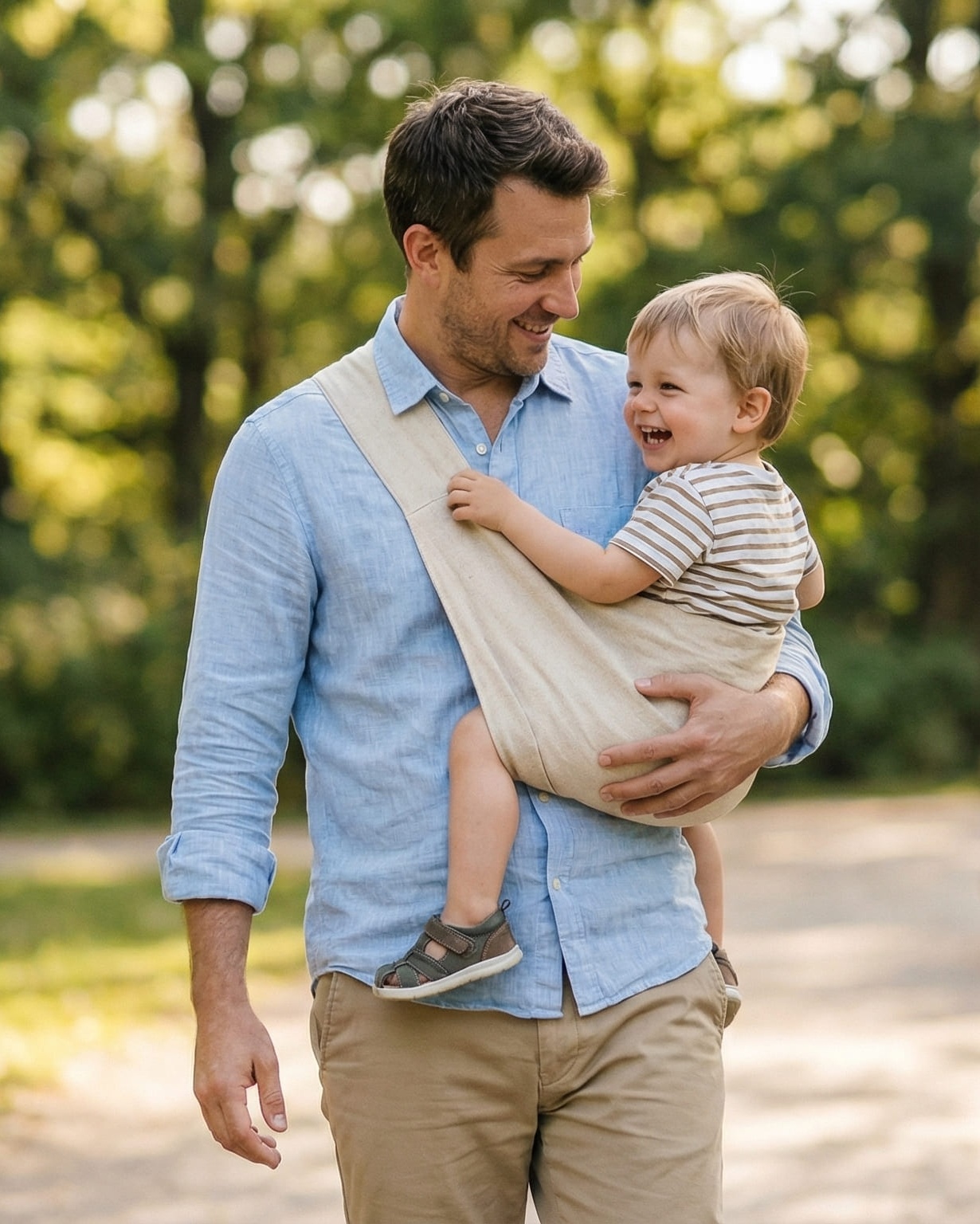 From quiet mornings at home to peaceful afternoon strolls, our organic linen sling keeps your little one cradled close to your heart. It creates a natural sanctuary for nursing and bonding in complete, breathable comfort. Who needs distance when you can have this?